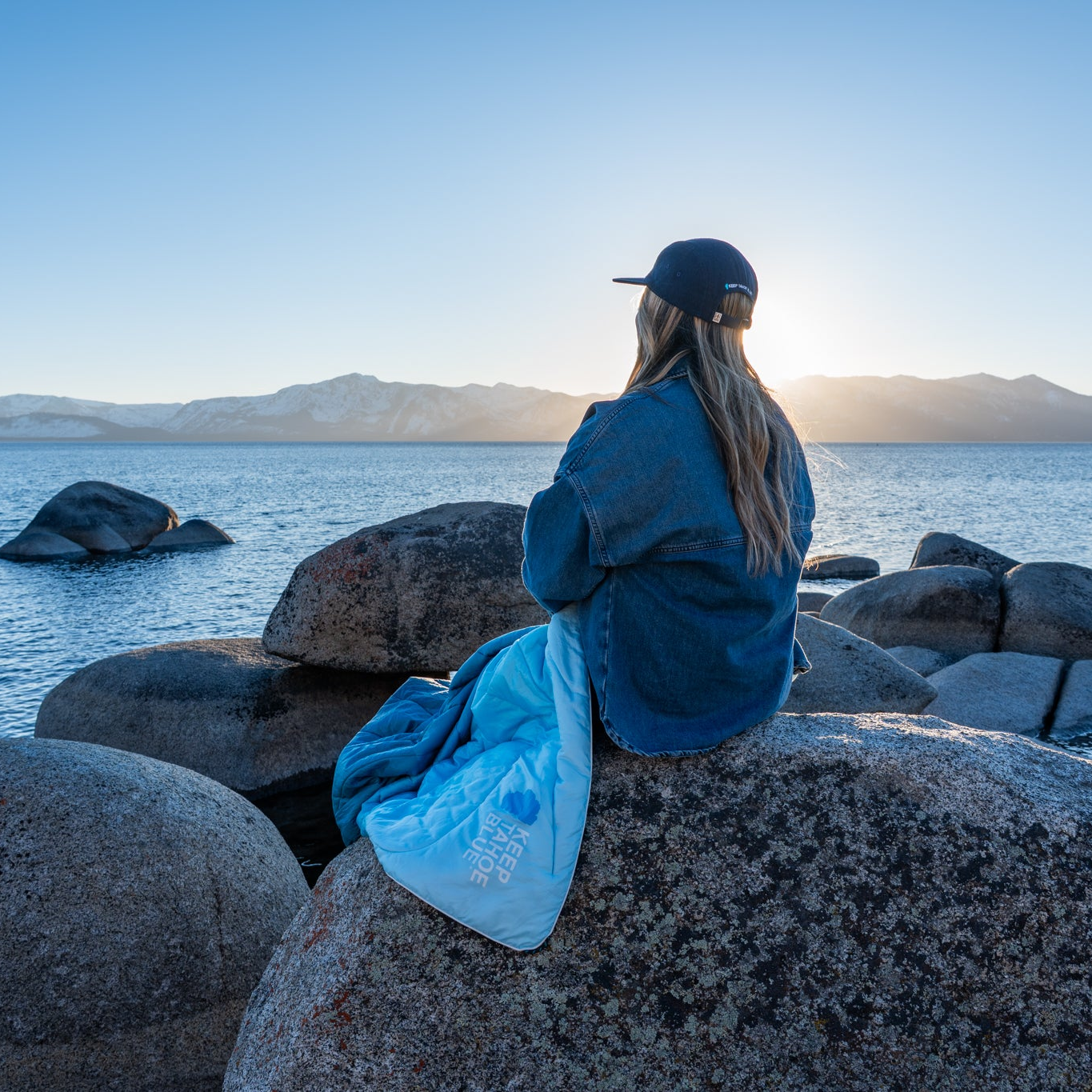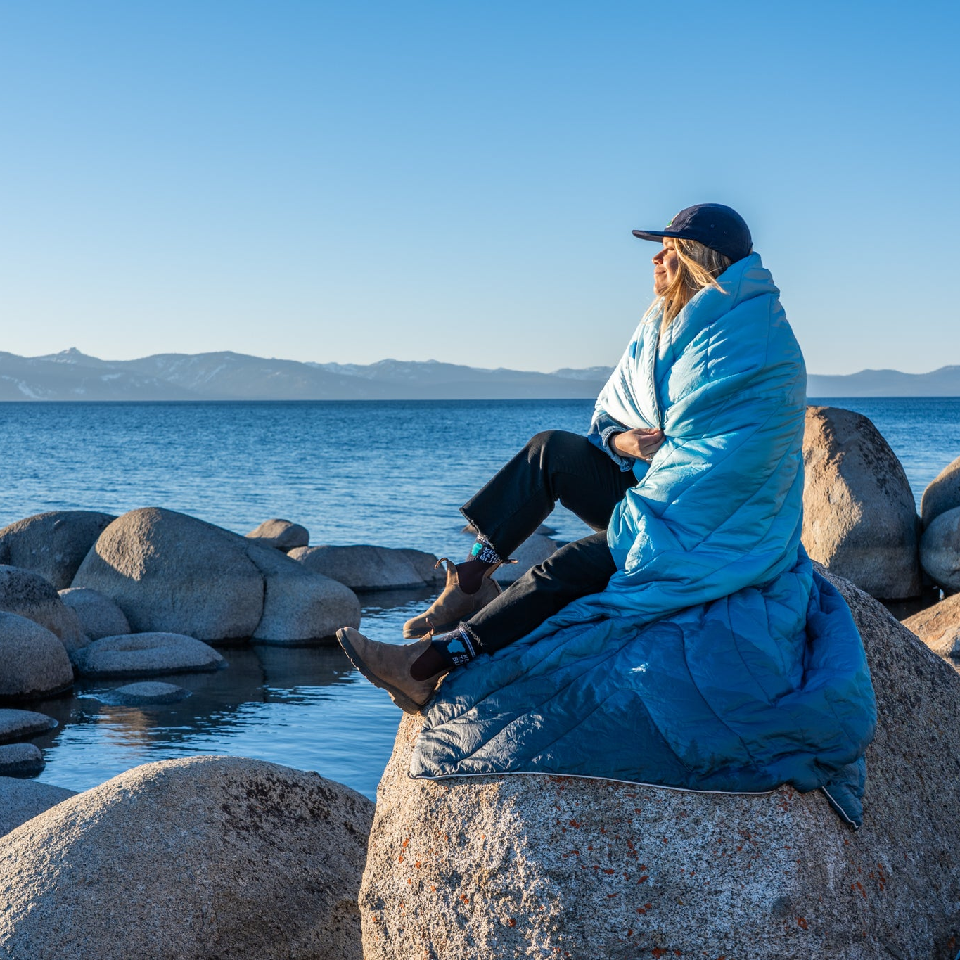 Inspired by the majestic Sierra Nevada mountains, take your puffy blanket everywhere you go! Perfect for camping, picnics or snuggling up on the couch.