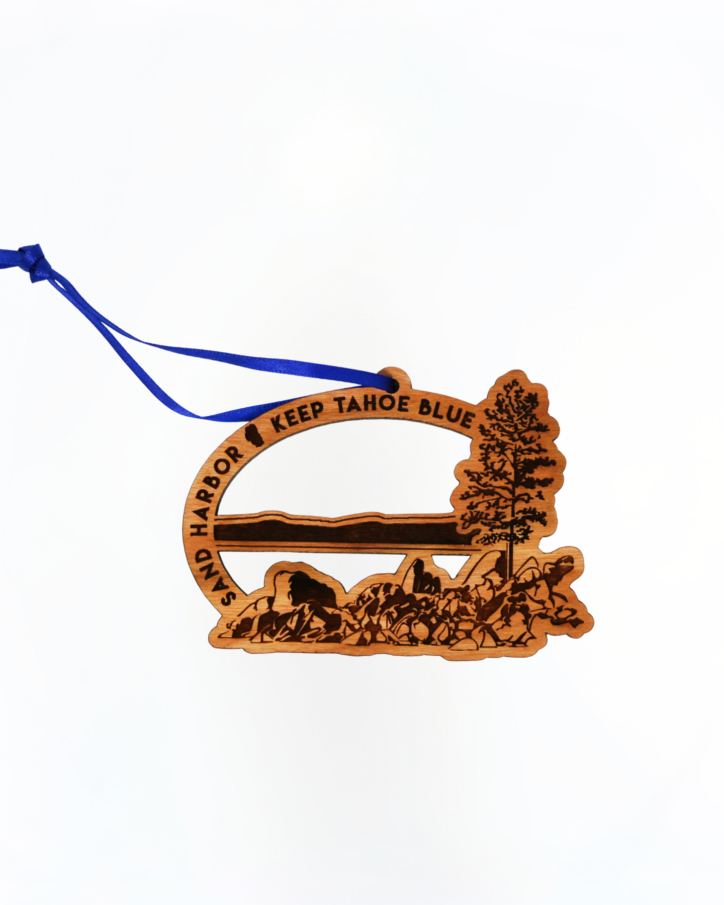 Our wooden Sand Harbor Ornaments are made from renewable, sustainable North American hardwood. Featuring stunning, laser etched artwork of Sand Harbor from Nestled Pines Woodworking. A thoughtful gift for friends, family, and co-workers while supporting efforts of Keep Tahoe Blue.