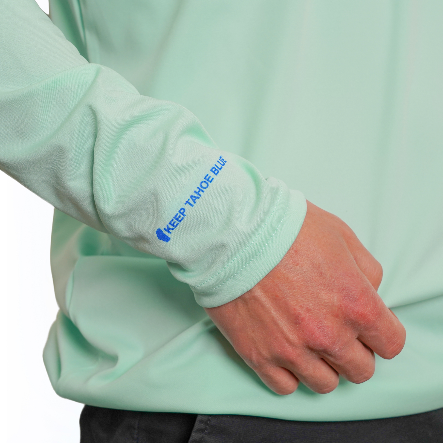 Moisture wicking and lightweight, Keep Tahoe Blue sun shirts provide UPF 50+ protection blocking 97.5% of harmful rays while keeping you cool and dry.