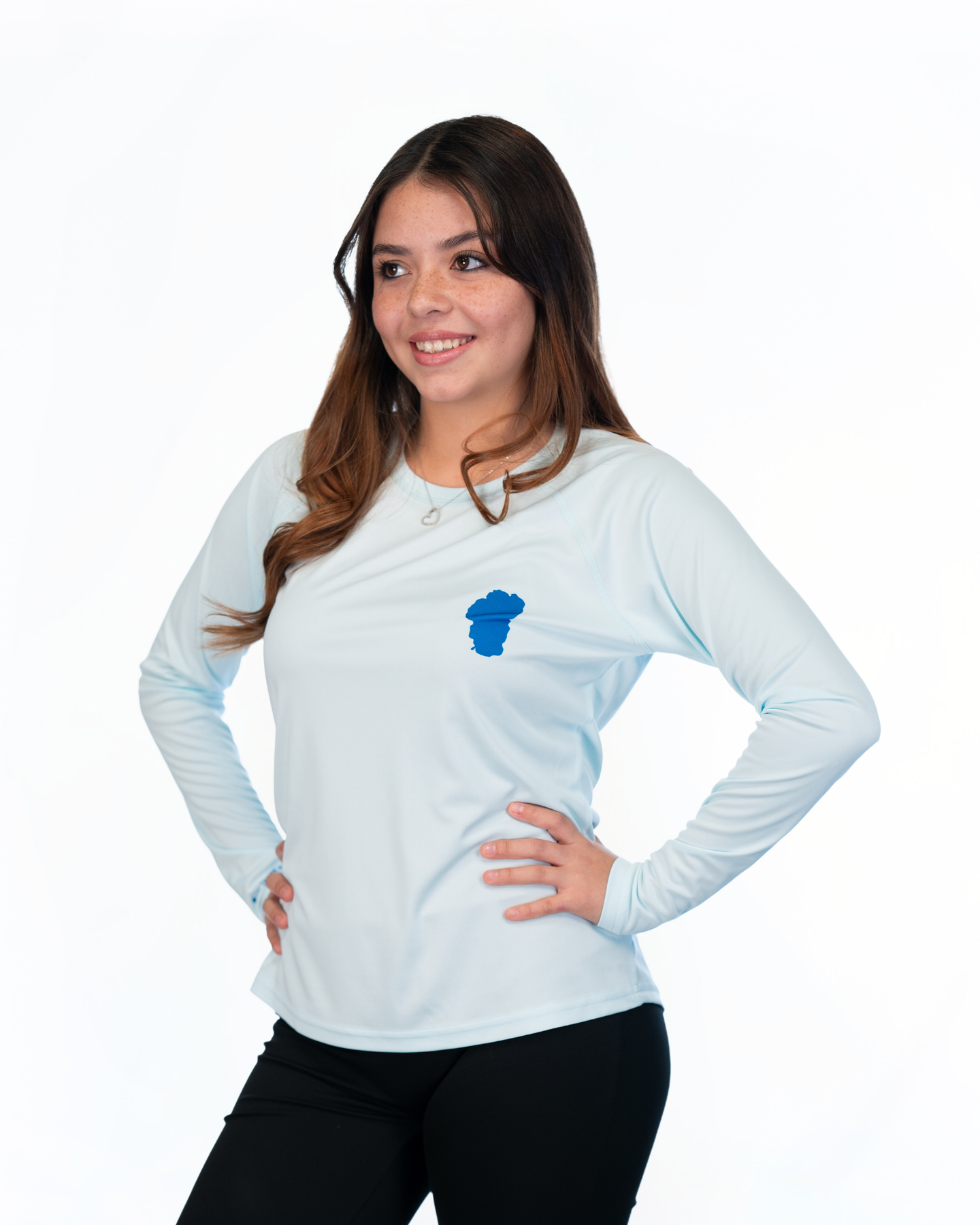 Go from boat to trail to restaurant patio with ease in our Long Sleeve UPF Shirt. Moisture wicking and lightweight, Keep Tahoe Blue sun shirts provide UPF 50+ protection, blocking 97.5% of harmful rays while keeping you cool and dry.